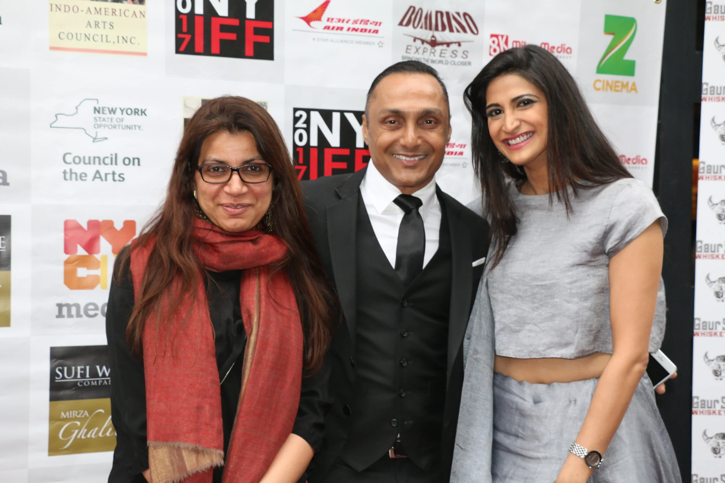 The 17th New York Indian Film Festival (NYIFF) opened up today at Village East Cinema, in Manhattan, New York City. The opening night was attended by several Indian celebrities: Rahul Bose (actor, writer, director with a film POORNA at the festival); Alankrita Shrivastava (director of LIPSTICK UNDER MY BURKHA); Aahna Kumra (actress from LIPSTICK UNDER MY BURKHA); Salman Rushdie (author & filmmaker); Tanushree Dutta (Miss India Universe & Bollywood Actress); and many others.